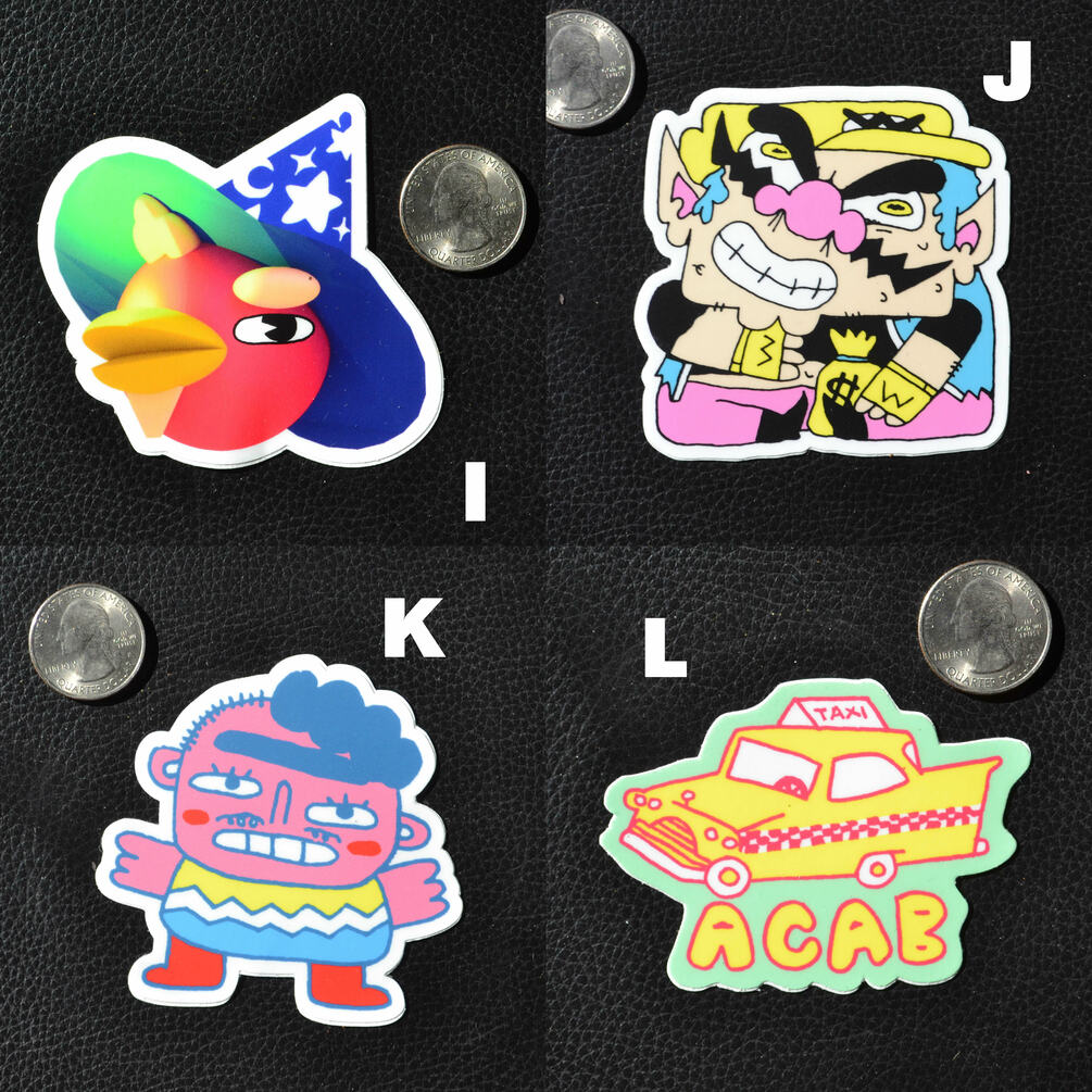 Stickers!PK Sturdy vinyl stickers, can stand up to outdoor conditions. Roughly 3 inches in longest direction. $2+2usdA: Sk8r G8r21 left$2+2usdB: Sk8r Fish10 left$2+2usdC: Spongebob #75 (pink)16 left$2+2usdD: Spongebob #85 (falled apart)8 left$2+2usdE: Spongebob #96 (purple)24 left$2+2usdF: Spongebob #98 (3d)23 left$2+2usdG: Let'ss Beach!!14 left$2+2usdH: Birdstack10 left$2+2usdI: Milmort the Mysterious17 left$2+2usdJ: Wah ha ha7 left$2+2usdK: Wowzers7 left$2+2usdL: A CAB8 left$2+2usdM: Terfs & Swerfs Fuck Off1 left132usdName a fair price:$QuantityAdd to cartAdd to wishlist New wishlistShareShare on XShare on Facebook Copy linkCopy product URL